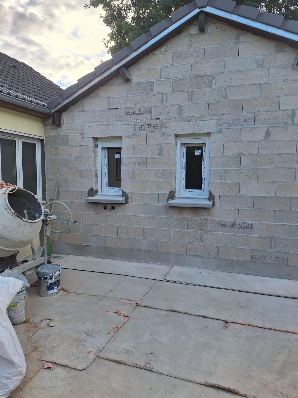 Les travaux ont débuté par les phases de terrassement et de fondations, indispensables pour assurer la stabilité et la durabilité de l’ouvrage. La maçonnerie a ensuite été réalisée avec soin, en respectant les caractéristiques de la construction existante et les contraintes techniques du projet.