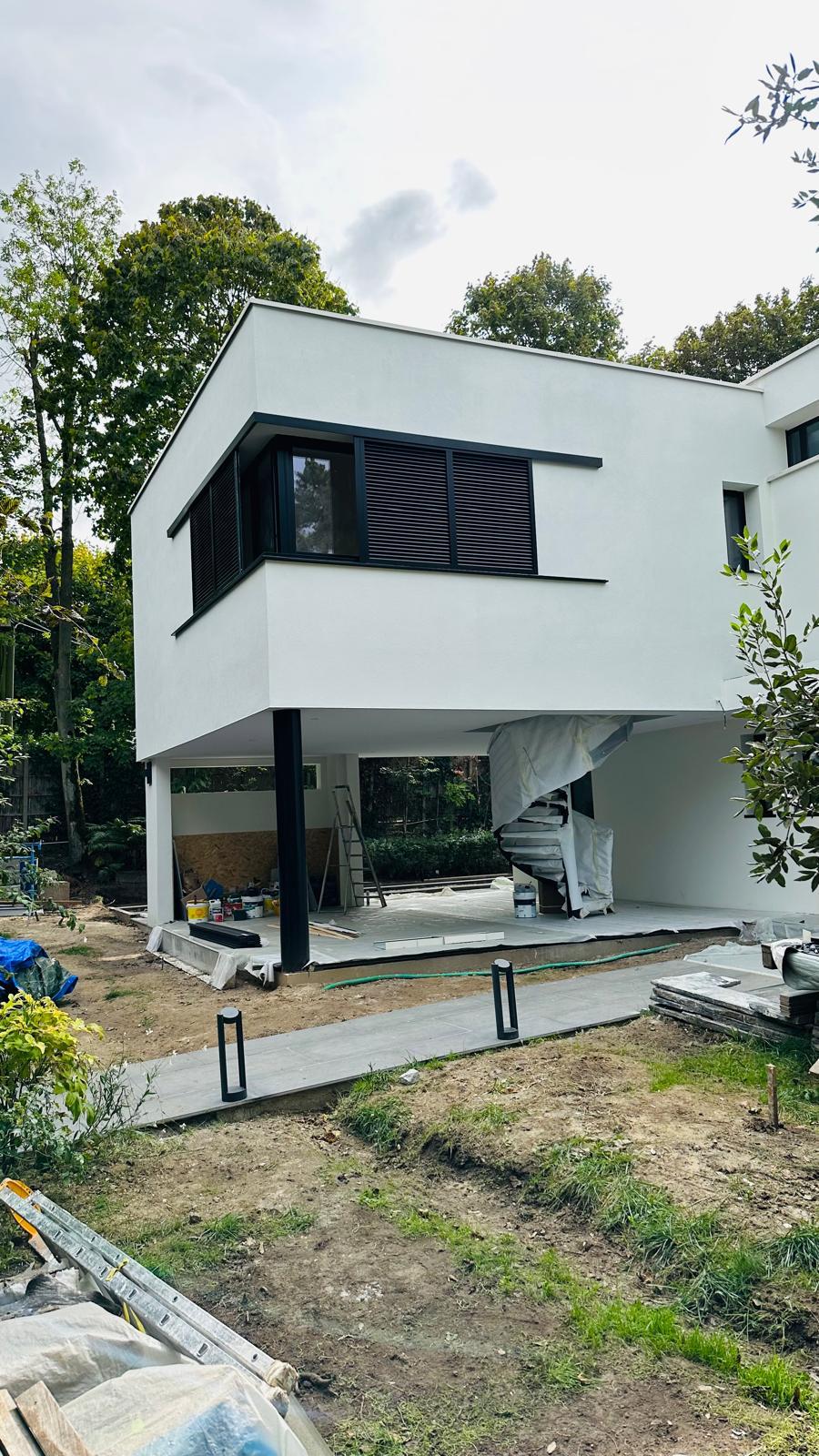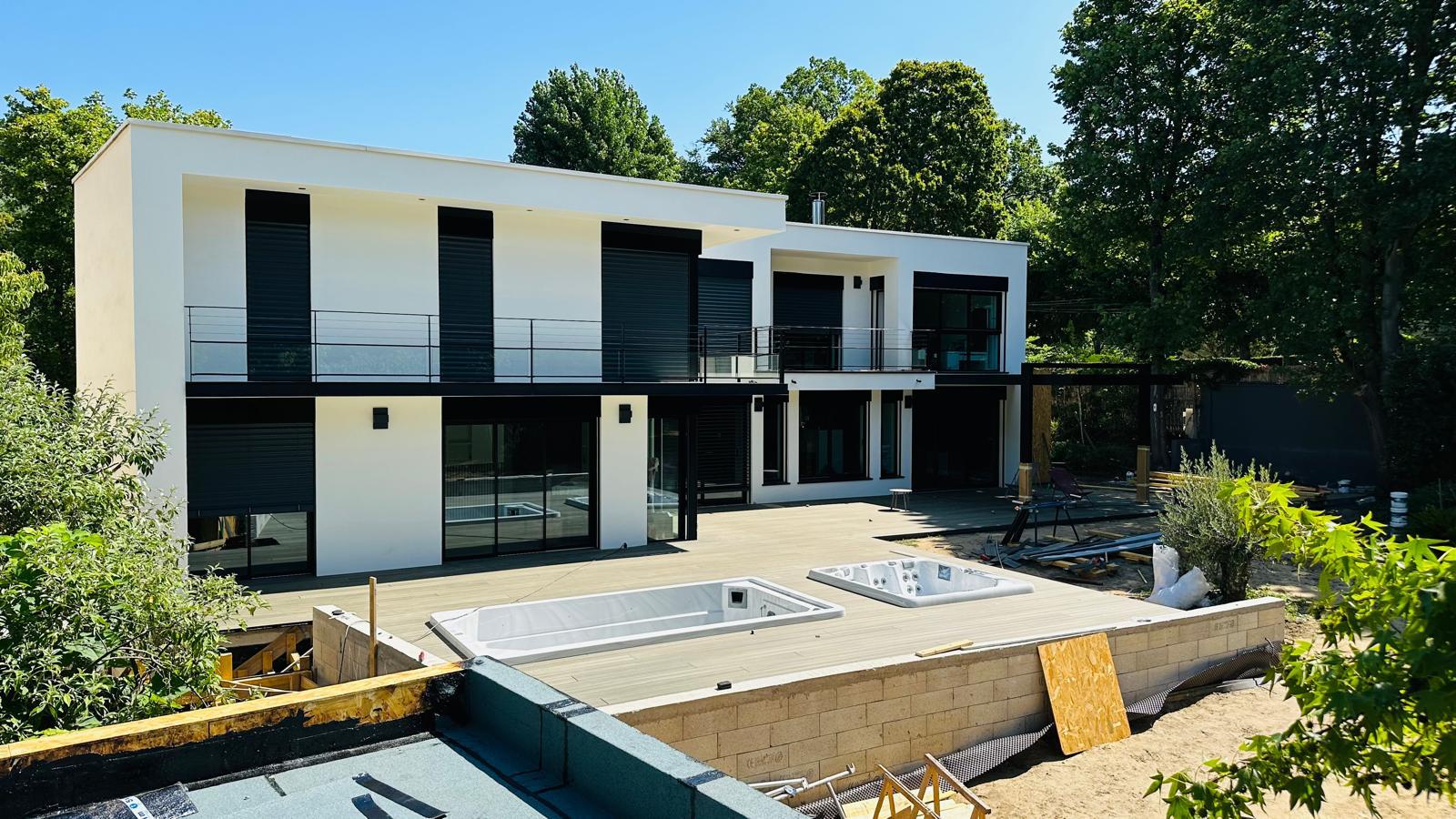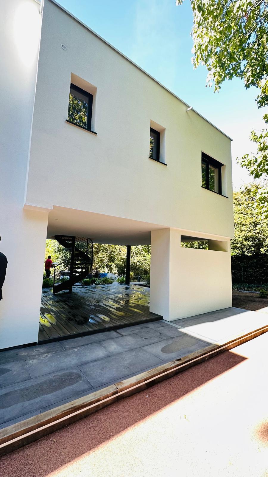 Sur ce projet à Rueil-Malmaison, ESRM est intervenu sur l’ensemble des travaux, incluant le terrassement, les fondations, la maçonnerie, la charpente, la pose des fenêtres, l’isolation, les peintures, les sols, l’étanchéité, le ravalement, la création d’un escalier et les travaux de serrurerie, ainsi que les aménagements extérieurs comprenant la piscine et le jacuzzi.