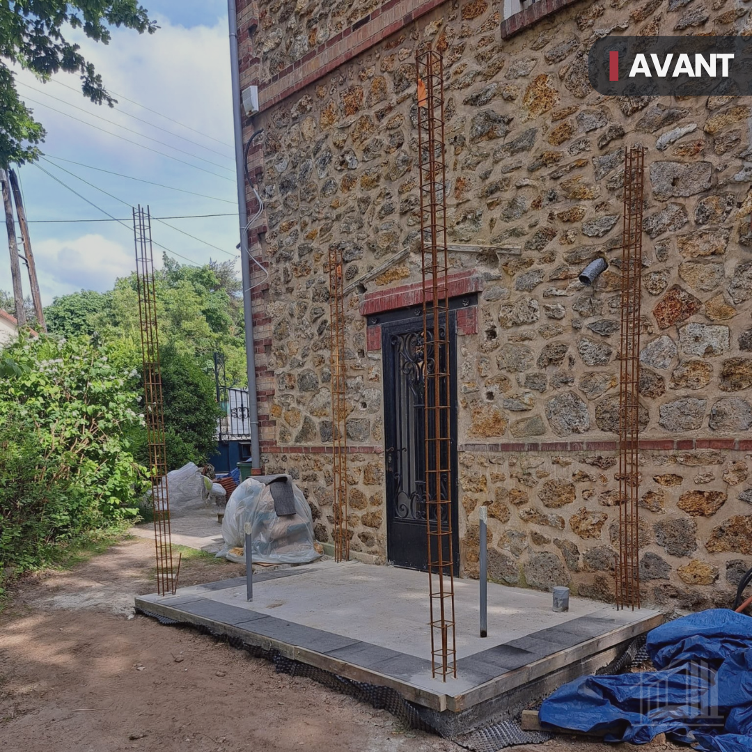 Nous avons réalisé une extension et une surélévation de maison à Beauchamp (Val-d’Oise) afin d’augmenter la surface habitable d’une maison familiale tout en respectant son architecture d’origine. Ce projet comprend la création d’un salon en surélévation de 25 m², d’une salle de bain de 6 m², ainsi que la création d’une ouverture structurelleentre la maison existante et l’extension.