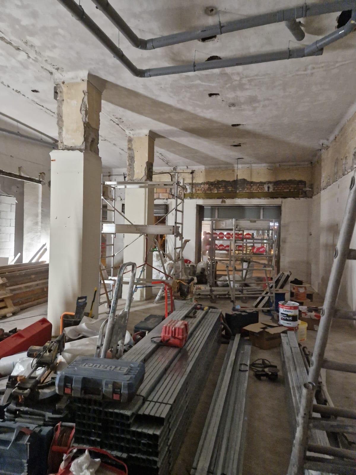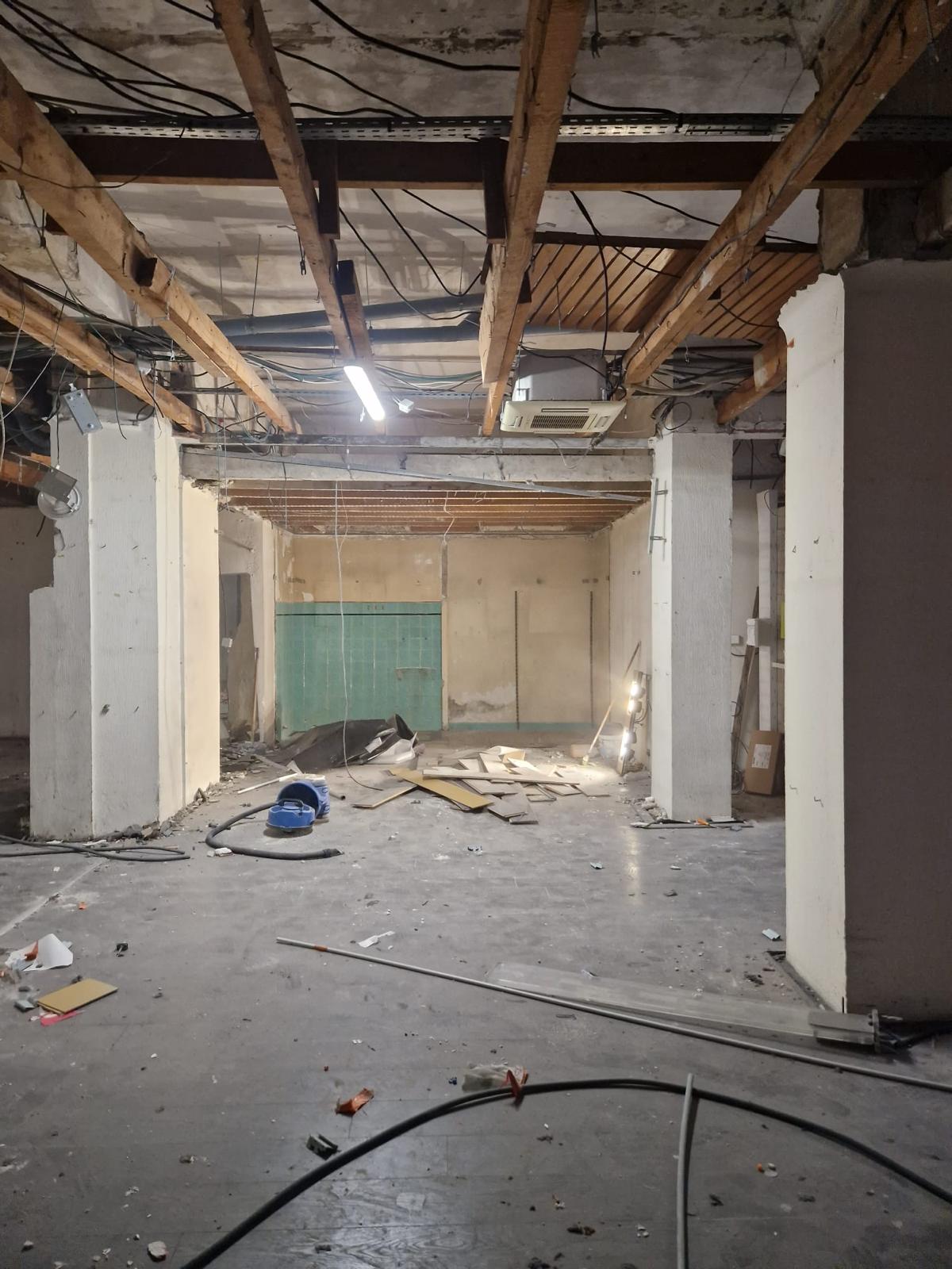 Les travaux ont débuté par une démolition complète de l’existant. Cette étape était indispensable pour supprimer les cloisons obsolètes, les revêtements usés et les éléments devenus inadaptés à l’usage du local. La démolition a permis de repartir sur une base saine et de libérer les volumes, offrant ainsi une plus grande liberté dans la réorganisation de l’espace.