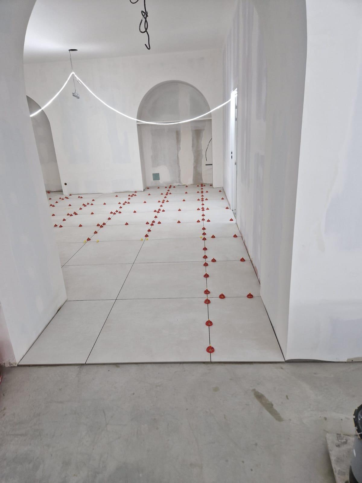 Après la démolition, ESRM a procédé à la création de nouveaux volumes en placo. Ces travaux ont permis de redéfinir les espaces du magasin, d’organiser les zones de circulation et de structurer les différents usages du local. La mise en œuvre du placo a été réalisée avec précision, afin d’obtenir des surfaces planes et prêtes à recevoir les finitions.