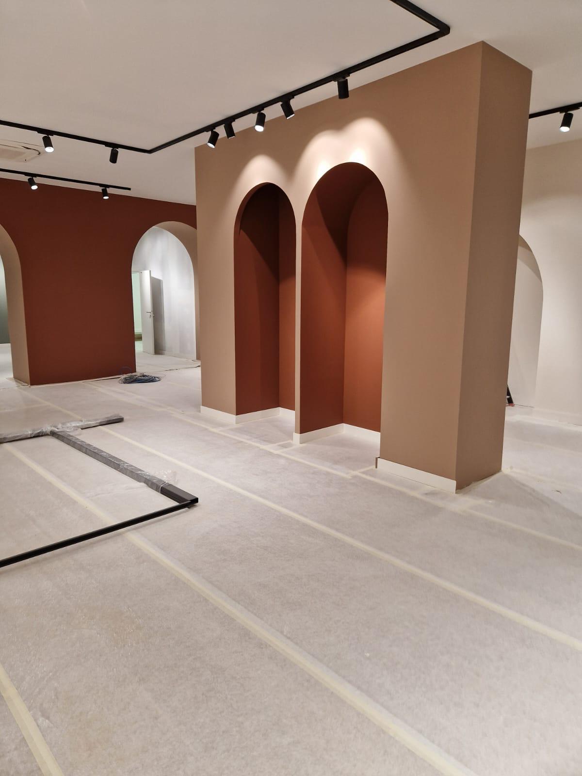 La rénovation a également porté sur l’ensemble des travaux de peinture, du sol au plafond. Ce choix permet d’unifier les espaces et de créer une ambiance cohérente dans l’ensemble du magasin. La peinture joue un rôle essentiel dans la perception des volumes, la luminosité et l’atmosphère générale du lieu.